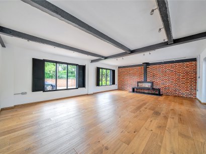 Large hallway with wooden flooring through-out and an engineered staircase. Underfloor heating with spacious reception room with a Stovax wood burner, with double doors opening onto patio and extensive gardens. The hallway leads to ProNorm kitchen and dining area with Miele appliances, induction hob, with bi-folding doors that extend onto the garden. A separate utility room, cloakroom. A downstairs bedroom or home office with shower room.