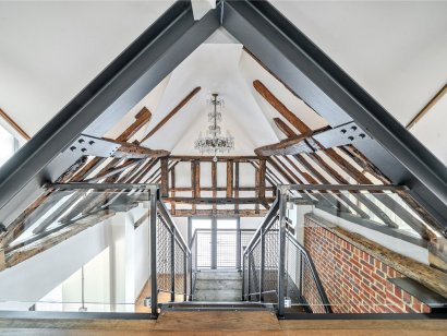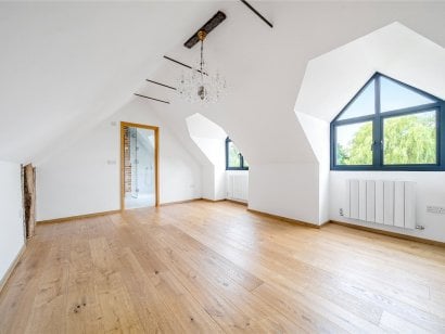 Upstairs, the main bedroom features a large en-suite bathroom with a Grohe shower and oak walk in wadrobes, with remote control privacy glass. Bedroom two is well proportioned double bedroom with an en-suite shower room and walk-in wardrobe.